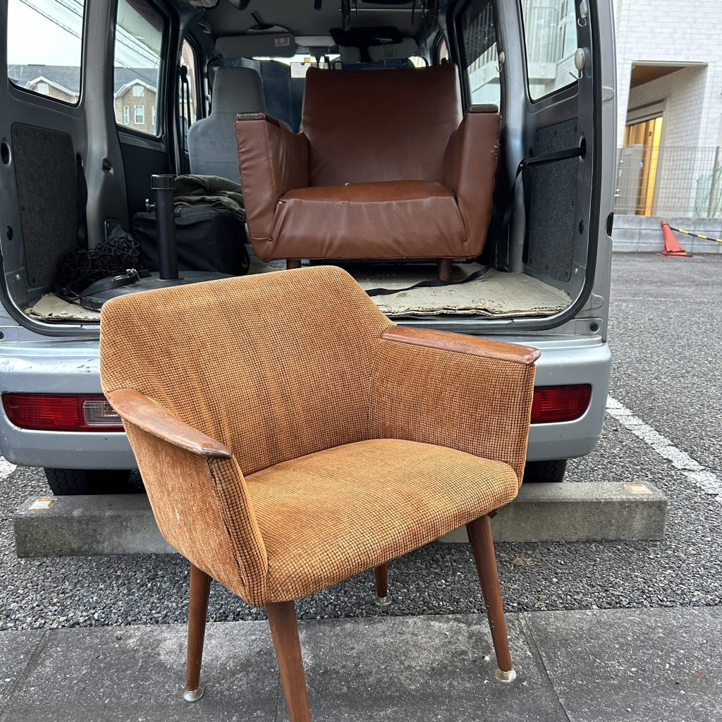 自問自答とうれしい出戻り。 コラム 2024.08.07 8月7日の古道具屋 センマイ!ジュッカンメ!威勢のよい掛け声が響く古物の競場で自問自答。モノがあるれる店内に、また増やすのか古道具を!目の前の欲しい商品を見つつも、競るのをためらう。戦利品がゼロな帰路、約10年程前に販売、カフェで使われていた椅子が戻ってきた。コンディションもよく、お気に入りだった椅子、ホテルオークラに座りながらこの日記を書いているのだが、その後ろで早くも爪を研ぎ出す猫たち。とほほほ
