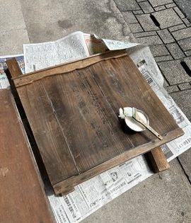 9月4日(水)の古道具屋 昨日ペイントした室外機の屋根板。ニスは乾いたものの黄疸は消えず。ま、いずれ良い風合いになることを願いつつ、完成。 次なる宿題はこれ。やはり、思惑通りサクサク進まぬ貼り替え。だから先延ば...